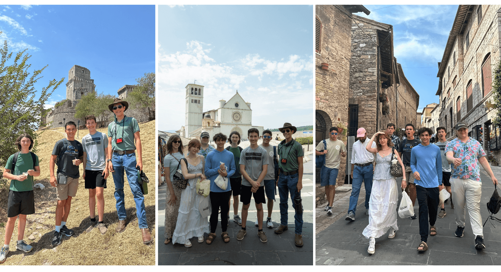 To finish the week, students awoke early on Saturday morning to catch a train to Assisi. The serene hill-top town is a spiritual oasis for its visiting pilgrims. This hometown of St. Francis offers quiet retreats, streets paved of stone, and a wooded hermitage sight for solitude and introspection. In Assisi, the students visited the churches containing the sacred tombs of St. Clare, St. Francis, and Blessed Carlo Acutis. While some made the march up rocky paths to the stunning views from Rocca Maggiore, others stopped to pray in the Cathedral of San Rufino, the church containing a heart relic of Blessed Carlo Acutis. Then the whole group made a pilgrimage to Santa Maria Maggiore which holds the body of Bl. Carlo Acutis, patron of Computer Scientists and a special intercessor for these students as they study computer science this summer. Finally, we meandered through the streets of Assisi to the Basilica of St. Francis, which lies at the end of a path stretching through the little town. Assisi presented students with the opportunity to ask prominent saints for their guidance and intercession. CatholicTech is surrounded by the relics of great saints of the past and by pioneering disciples of the present day.